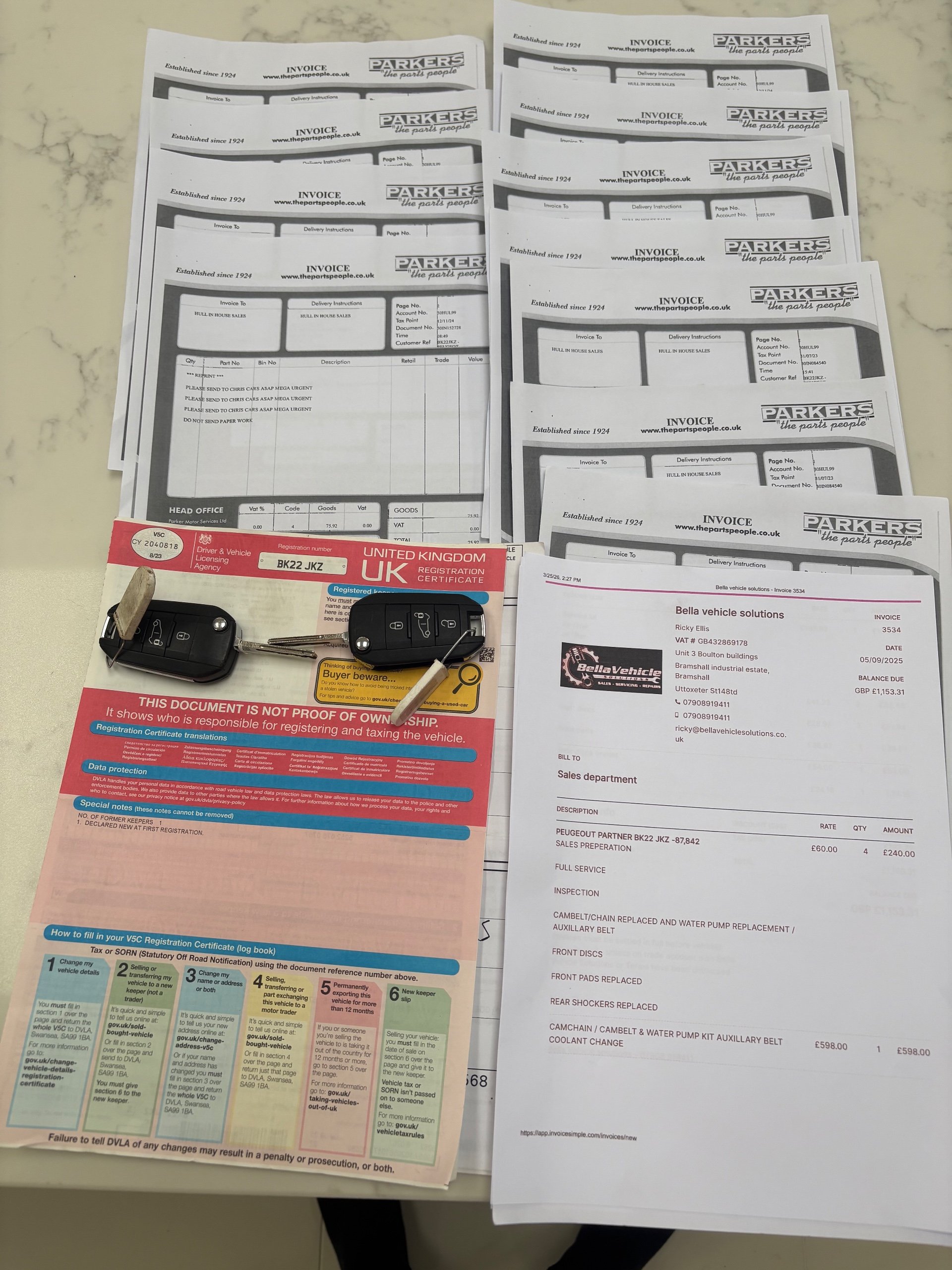 Full services history Cam chain & belt kit and water pump last year with invoice